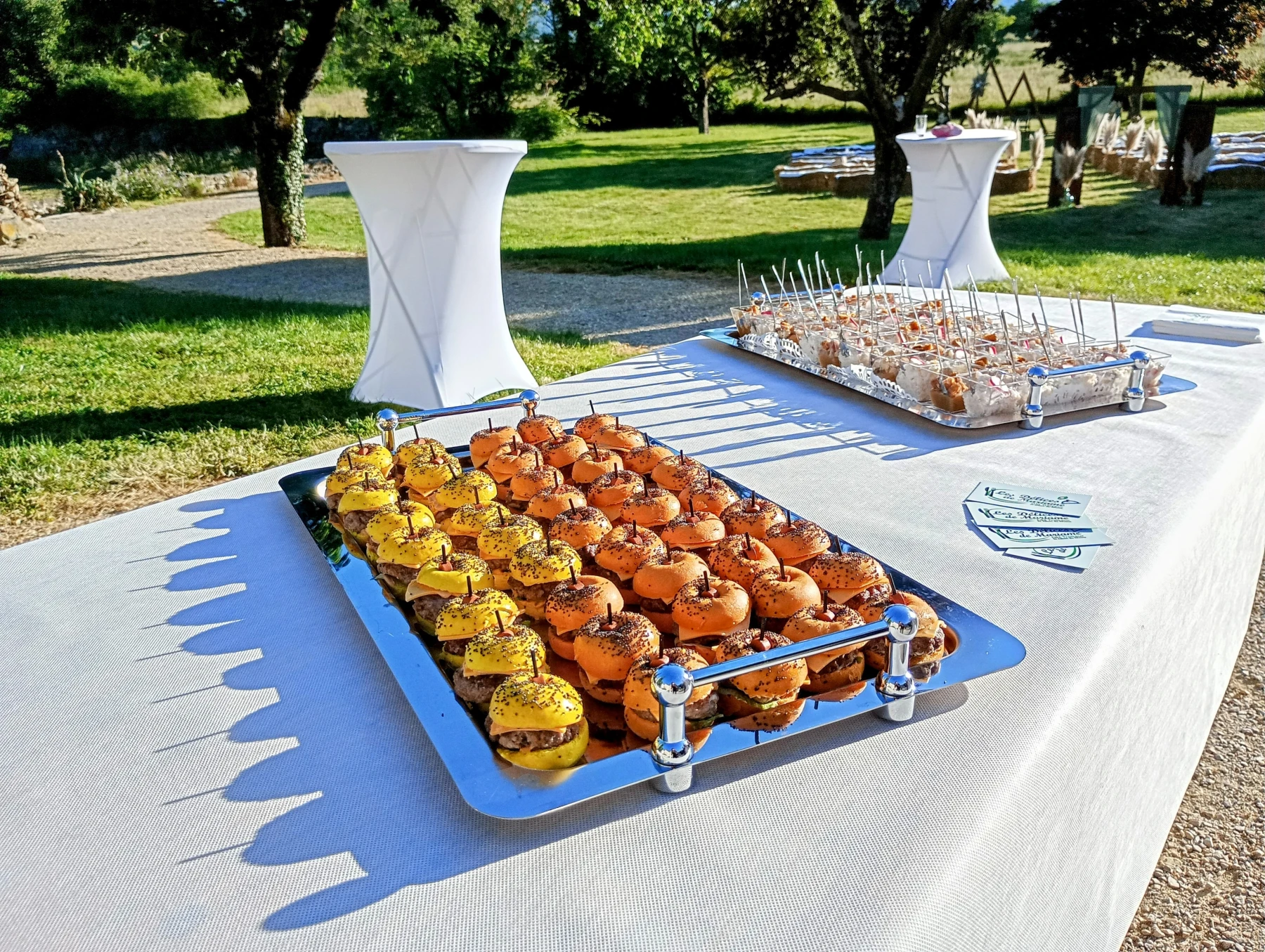 Les plus de 130 personnes présentes au cocktail ont pu se régaler de nos pièces apéritives chaudes et froides avec notamment des brochettes de viandes et de poissons cuites en direct à la plancha qui ont rencontrés un grand succès.